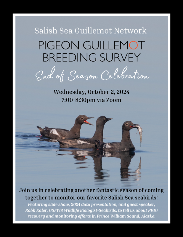 As far as I know, all colonies are done now, with the exception of one, Butterball Cove (South Sound). If you can believe it, they are still observing prey deliveries at this late date! Their last burrow activated two weeks ago, so they will potentially survey into October. Kudos to them for sticking it out! That's a loooong season (whew), but it will yield some interesting data to add to our study! I know that PIGU do sometimes lay a late clutch, especially if they've had a failed one earlier on, but they aren't very often successful. So far, this one seems to be going strong.