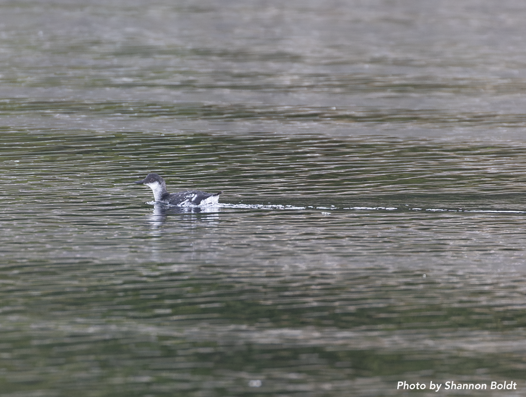 And in other exciting news, while a large group of photogs and birders were up at Fort Worden to see the wayward Red-footed Booby, another rarity was spotted--an all black PIGU!! This caused quite a stir early on in the week. It was presumed that this may be an all black PIGU subspecies, typically from the Kuril Islands of Russia, called Snowi. East Jefferson photog and surveyor, Hillary Smith, was able to snap some pics of this guy, and the photos were distributed to the experts. According to plumage expert, Peter Pyle, this bird is likely a melanistic local PIGU, rather than a Snowi, but there may not really be any way to tell. It's still super interesting and a fun find, nonetheless! It turns out, Peter has seen reports of another black PIGU near the Canadian border last fall. Karin Ertl also saw one at Point No Point two weeks ago, which could be the same bird!
