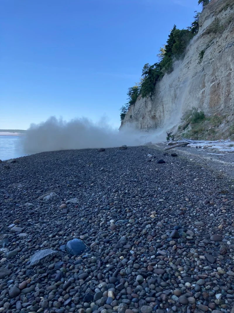 And I'll leave you with an important reminder: the beach and bluffs are very dynamic environments! Always stay aware of your surroundings and be safe out there! If you're surveying alone, make sure someone knows where you are and when you should be back. Here's a scary photo of the bluff sloughing as Mary Bond walked to her survey spot in E. Jefferson County last Thursday. We're so glad to hear that she is okay--although a bit startled!