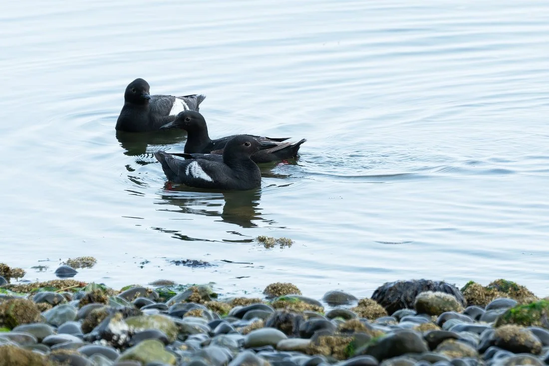 As one of the few seabirds that both breed and winter in the region, Pigeon Guillemots are considered an important indicator species of Salish Sea health Pigeon guillemots typically breed in coastal bluff ecosystems. This inextricably links them to the nearshore marine habitats that support vital natal grounds for many fish and invertebrate species. Additionally, these seabirds are near the top of their food chain, monitoring their populations and breeding success can help provide a snapshot of the health of subtidal marine environments and food webs. Because Pigeon Guillemots breed in smaller, more dispersed colonies, and have long been considered stable, they have not been the focus of much research in the Salish Sea. Our monitoring efforts seek to fill this knowledge gap, and in turn, inform our understanding of the health of nearshore marine environments.